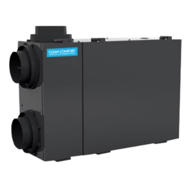 The Clean Comfort™ brand VE Series ERV exchanges heat between the fresh incoming air and stale exhaust air (just like an HRV), PLUS it helps manage moisture as well. The VE Series of Energy Recover Ventilators help to keep humidity outdoors in the summer and indoors in the winter, reducing the demand on your humidifier or dehumidifier.