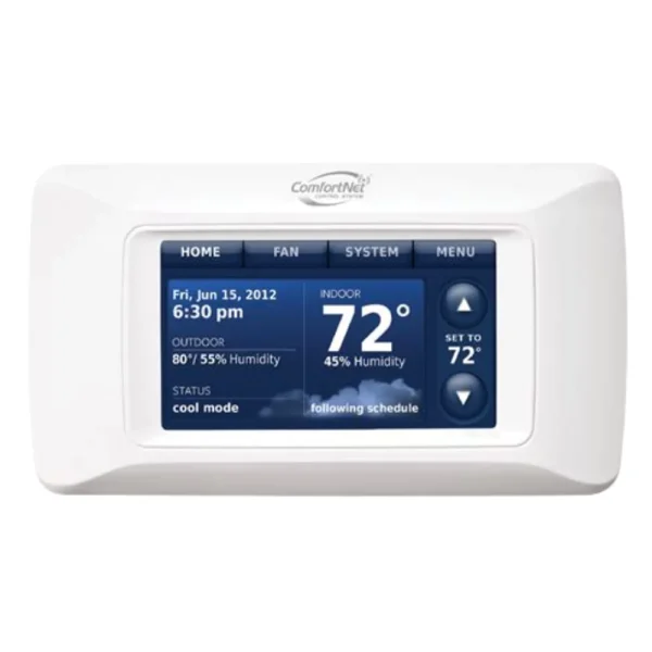 Standard features of the ComfortNet™ communicating thermostat include dual fuel compatibility, outdoor temperature display, dehumidification, advanced diagnostics, a programmable continuous fan control, and more. A wide assortment of wireless features are available making the CTK04 one the most user friendly controls available.